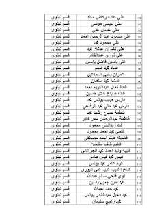 على الأسماء المدرجه أدناه مراجعه هيئه رعاية ذوي الاعاقة والاحتياجات الخاصه قسم نينوى في حي دوميز قرب جامع السورجي قرب مدرسه العابد الابتدائيه قرب اسواق دوميز الثانيه لاستلام استماره الماستر كارد يوم الأحد غدا مع حضور المعين والمستمسكات الاربعه للمعاق والمعين الاصليه.
